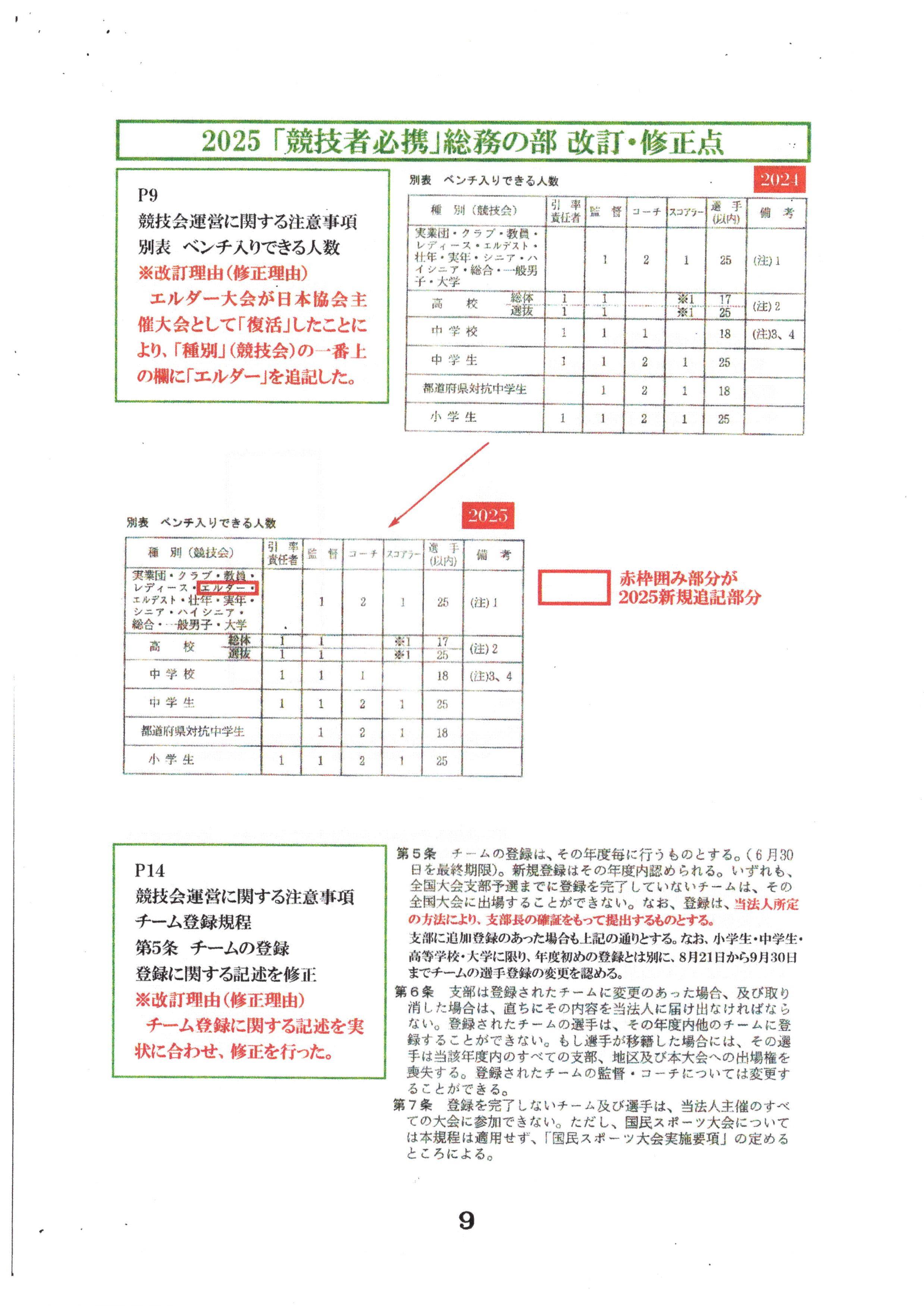 2025 競技者必携 総務の部 改訂・修正点