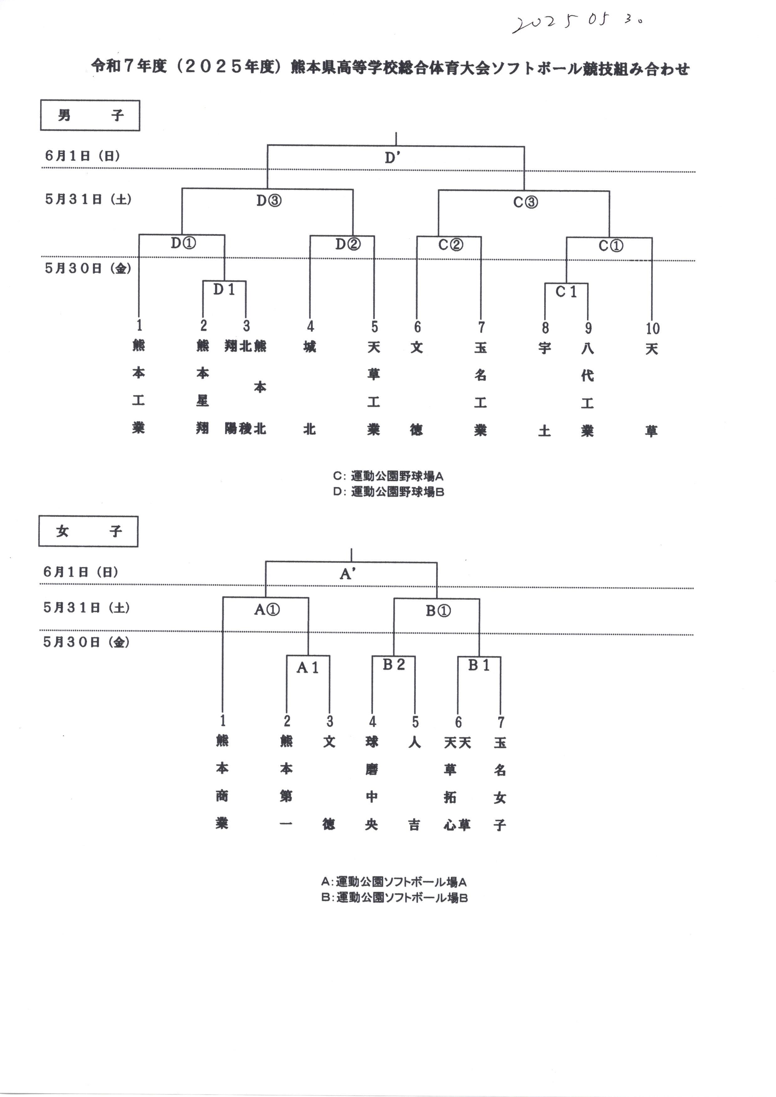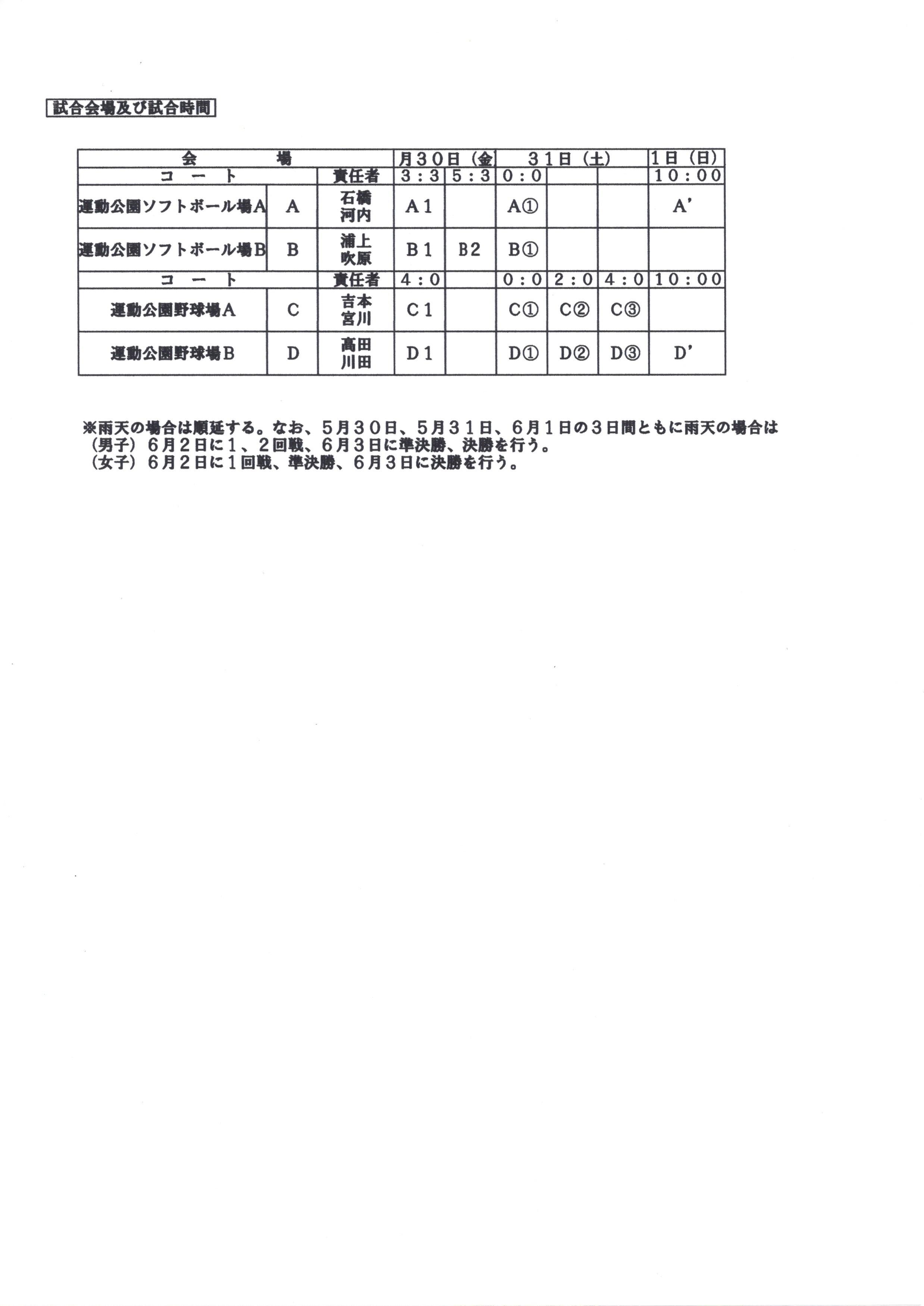 女 子 : A:運動公園ソフトボール場A